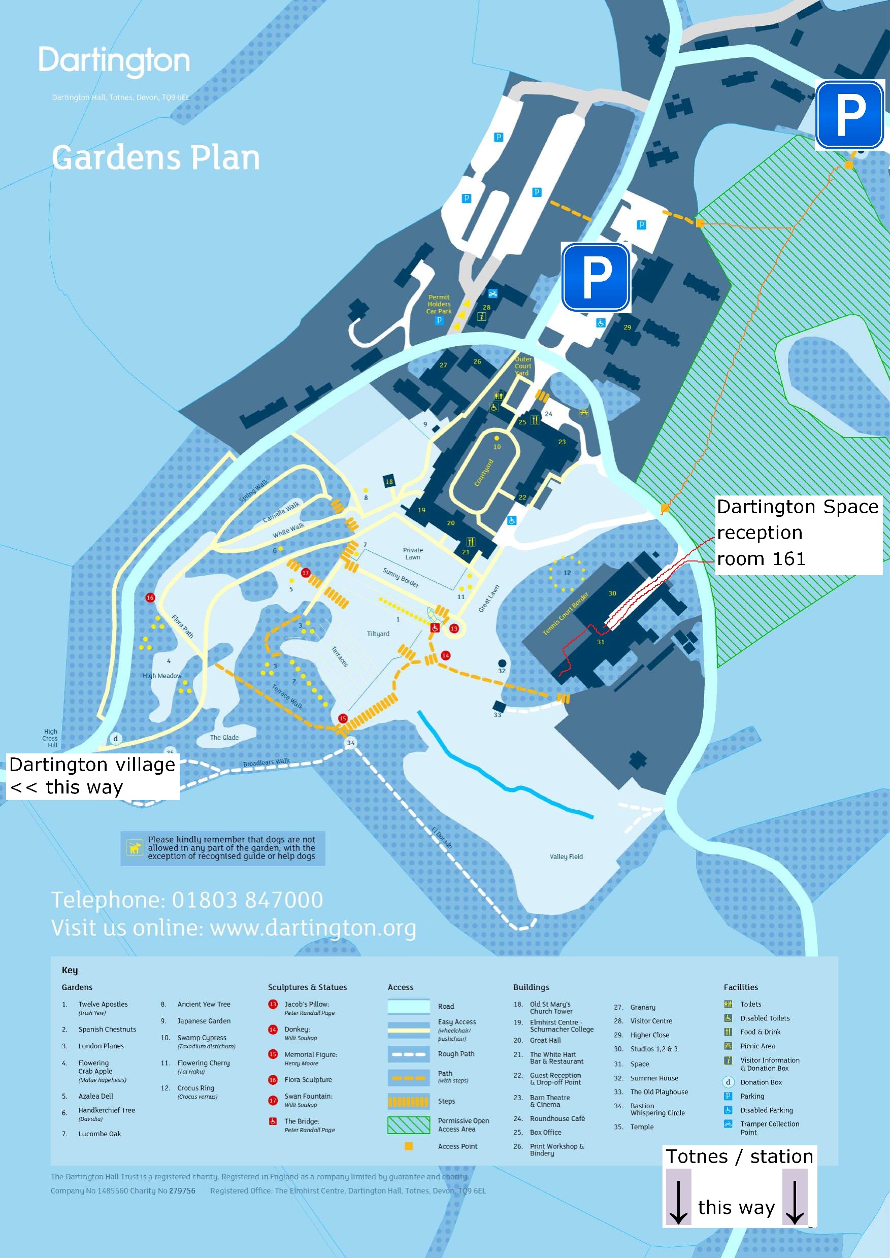 Car parking: there are several car parks on the estate (major ones marked with a large P on this map).